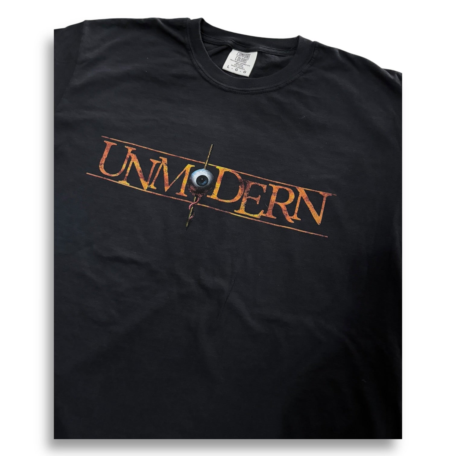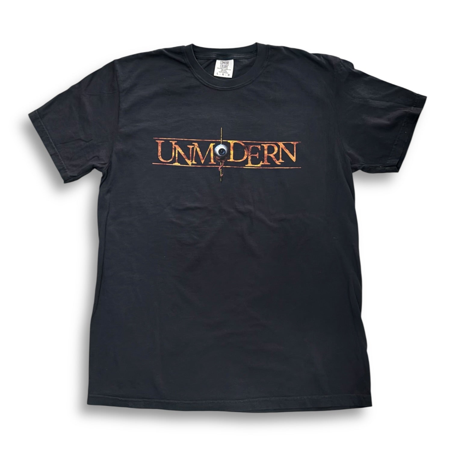 High quality screen print design on a washed-black high quality Comfort Colors soft tee.