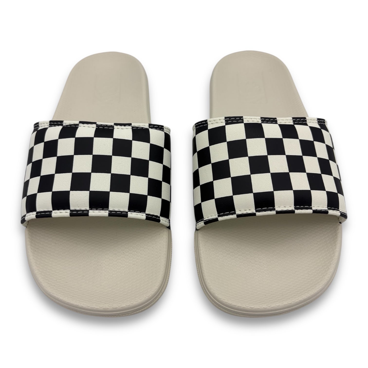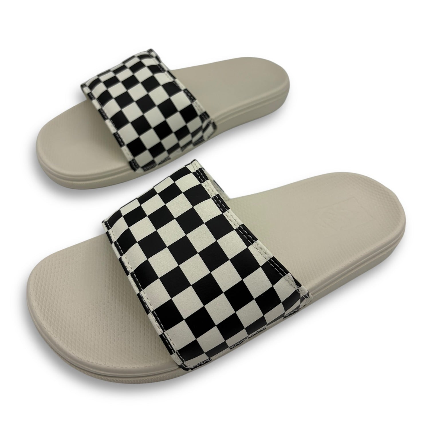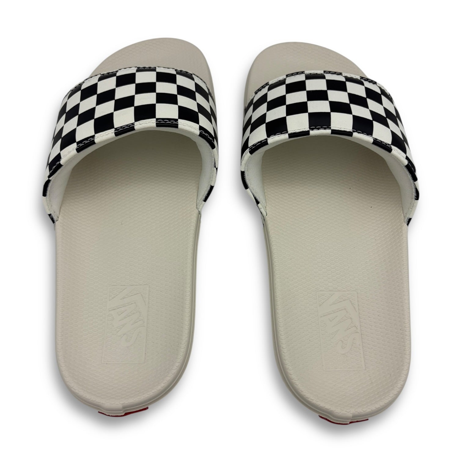 From the tonal checkerboard print on the straps to the iconic red heel scab, this sandal has an unmistakable Vans aesthetic.