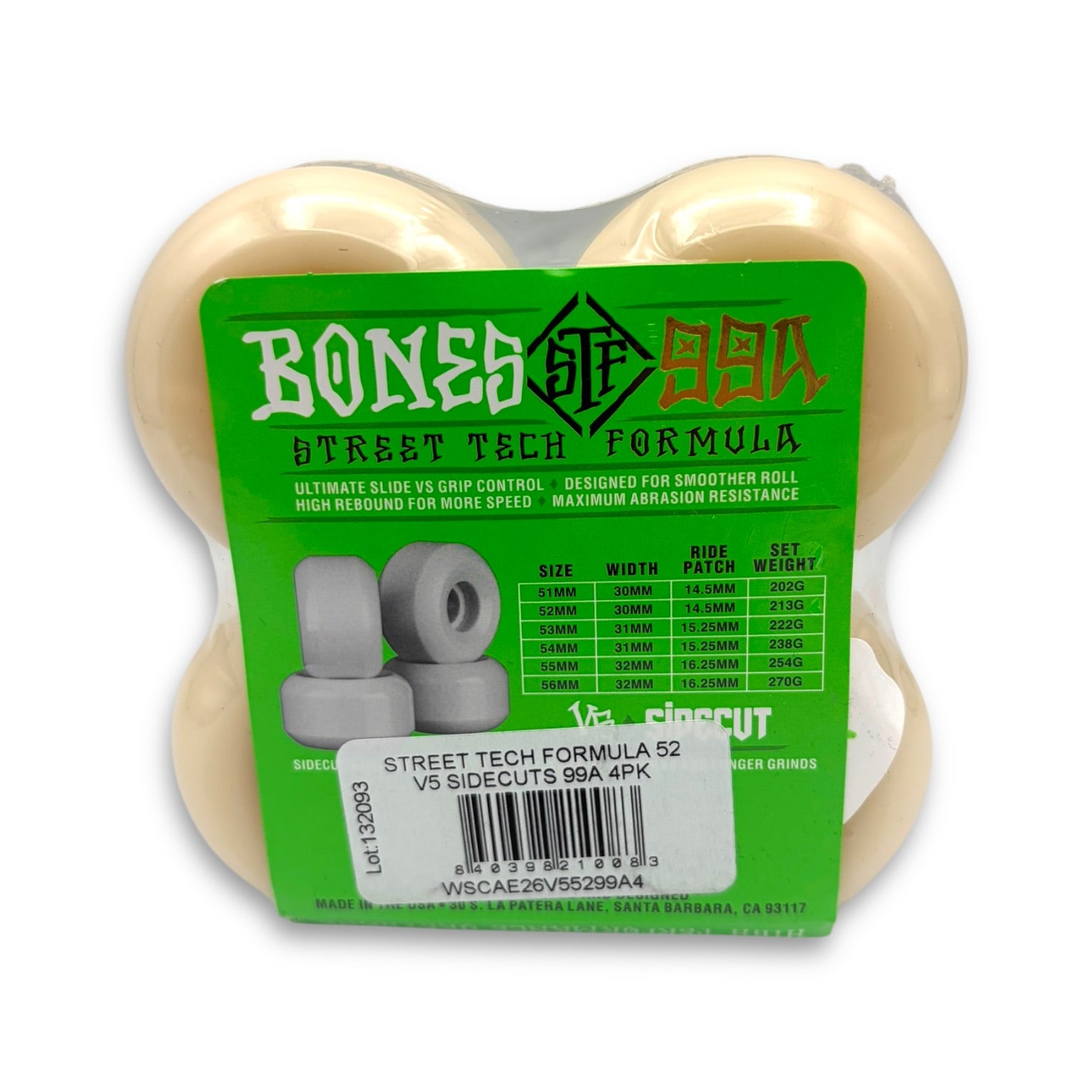 Bones Street Tech Formula powers the legendary Bones STF wheels that roll fast, grip when you need to and slide when you want to, without flat spotting. STF gives you more control to skate with confidence. Bones STF wheels outperform all other wheels, and because they wear so well, they last several times longer than normal wheels, making STF wheels the best for less.