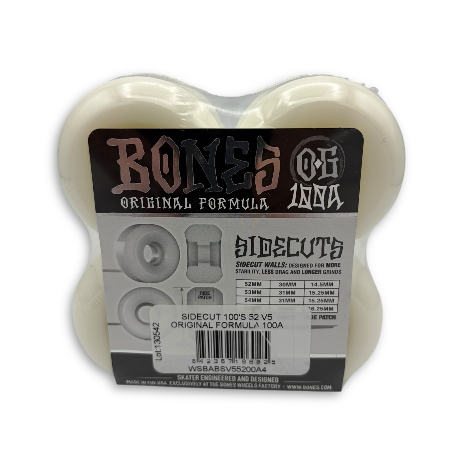 Bones Wheels - OG 100s is the original BONES wheel formula, offering a high performance and durable ride at an affordable price. These are sidecut wheels that are lightweight and good for street & park skating.